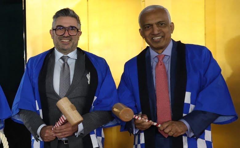 Tony Lombardo and Rangu Salgame at Wednesday’s completion ceremony in Saitama