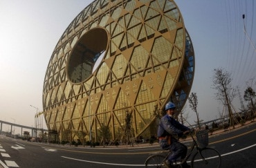 China’s twenty year building boom has led to many unusual, and often less-inspired designs, however, including buildings designed to look like traditional coins, teapots and mythical birds.
