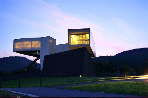Although building may be wrapped in steel, the museum was ostensibly built to house a collection of wood sculptures and paintings depicting ice and snow of the region.