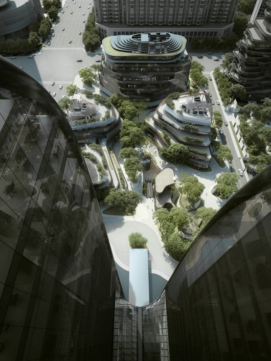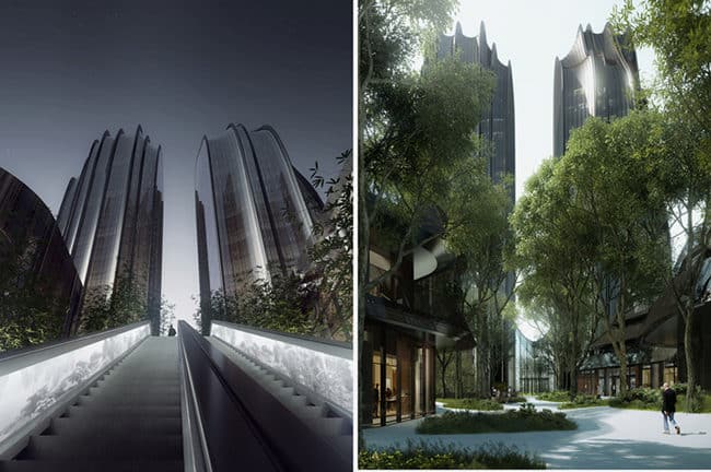 Designed by Beijing-based MAD Architects, the Chaoyang Park Plaza project aims to transpose Taoist philosophy to Beijing’s central business district, according to founding principal Ma Yansong, to unite architecture and nature into a single entity.