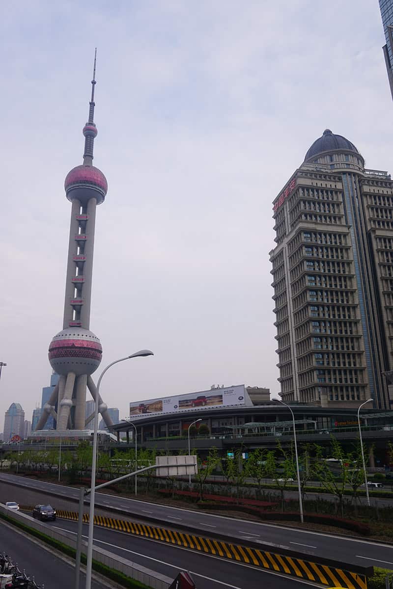 - The Pearl Tower (left) is the most recognisable landmark on the Pudong skyline