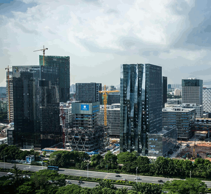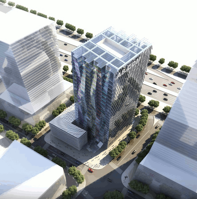 - An aerial rendering of the building