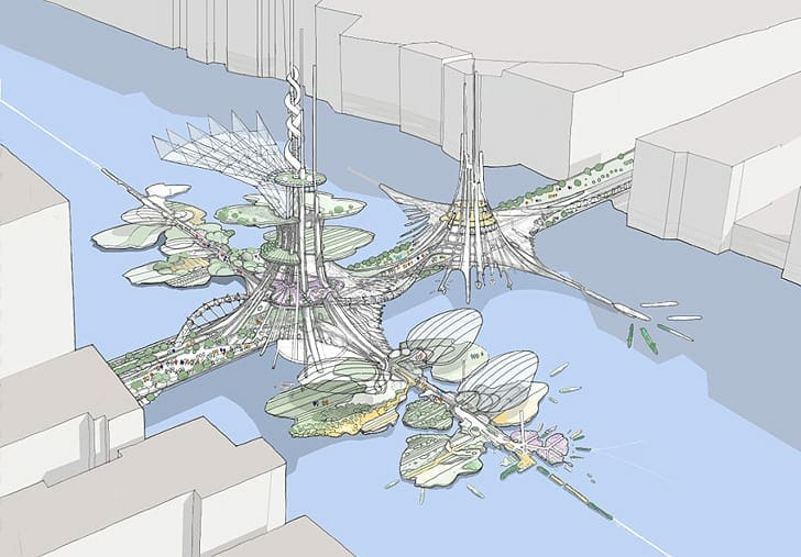 - Planned features range from green walls and river taxis to ‘metasequoias’