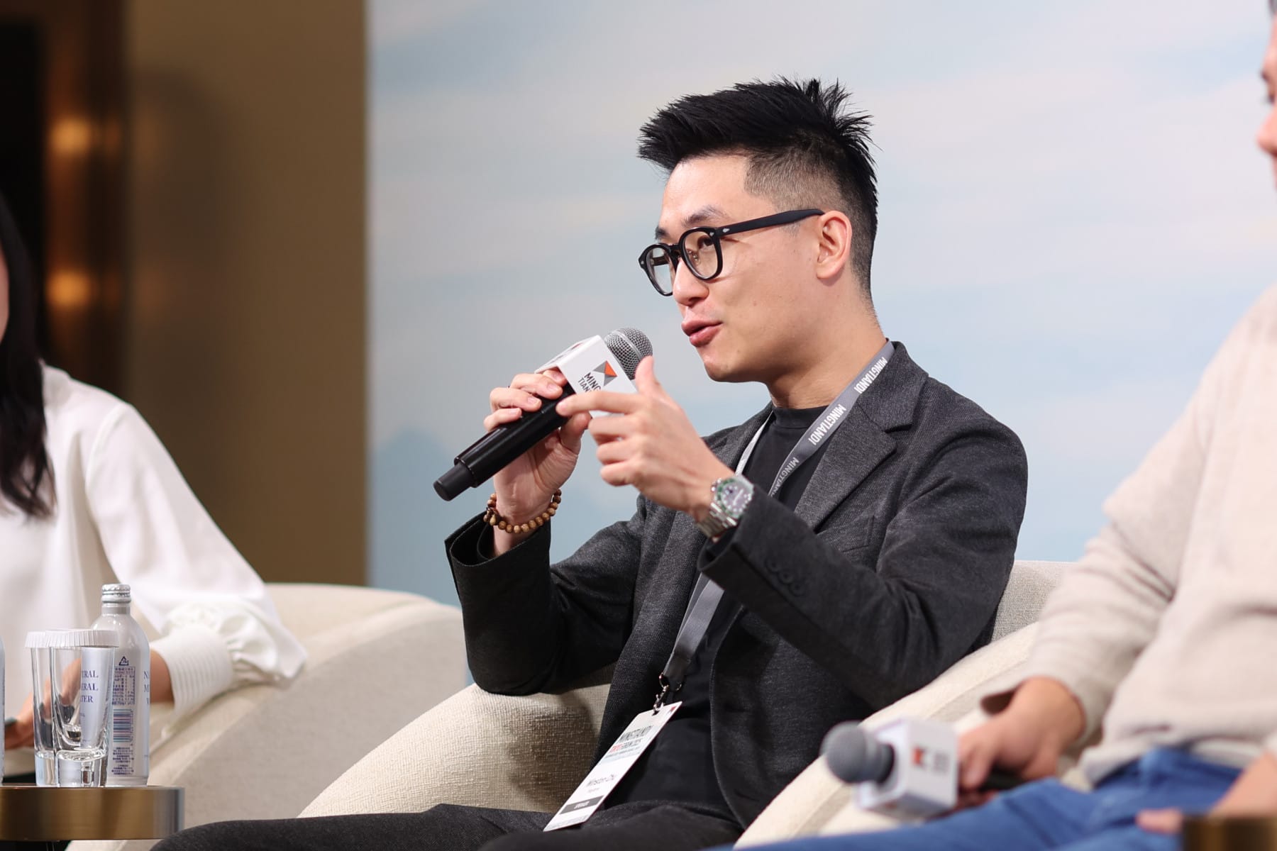 Scape founder and CEO Stephen Gaitanos speaks with Michael Cole at the Singapore Forum (Image: Mingtiandi)