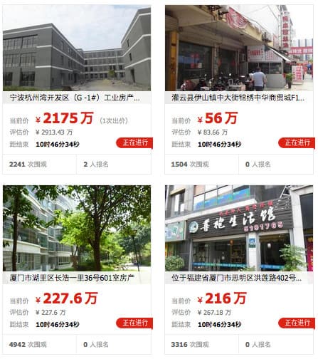 Among the items recently sold on the website are a 345 square metre apartment in Wenzhou that fetched RMB 10.7 million. If you feel bad about missing out on that deal, still available are an unfinished retail project in Jiaxing, Zhejiang for RMB 136 million, an industrial facility in Xiamen for RMB 133 million, and even an entire industrial park in Henan for RMB 918 million.