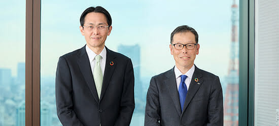 Orix JREIT’s executive director Hiroshi Miura and manager CEO Mitsuru Tanaka