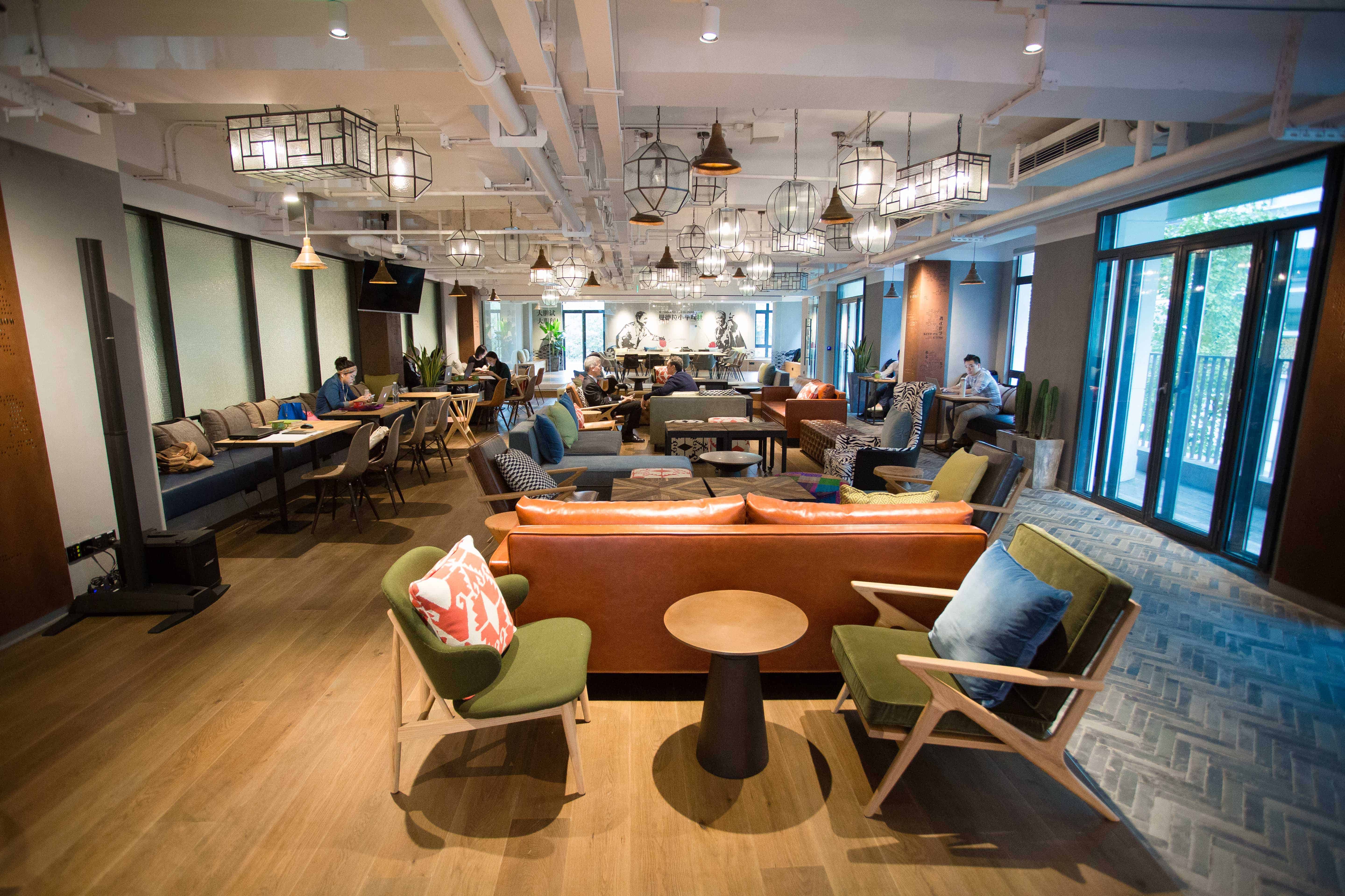 - The living room at the Xintiandi location is used for hot-desking