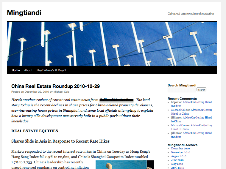 Many thanks to my friend Mark Beard for the new logo and the rest of the visual identity of the site. Mark was the creative force behind the visual identity for my RightSite.asia, and takes absolutely no responsibility for the former look of Mingtiandi, which I believe I came up with while drinking beer in the sun one day.