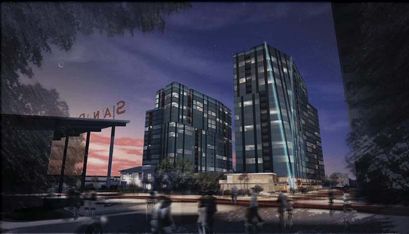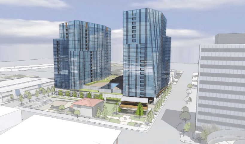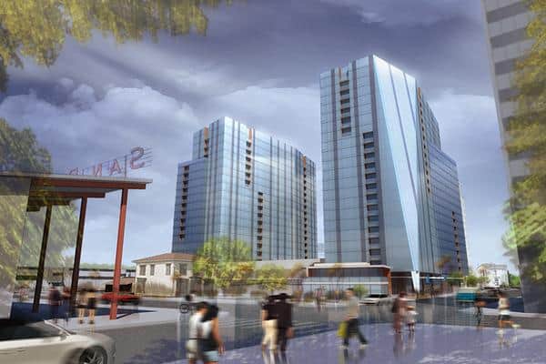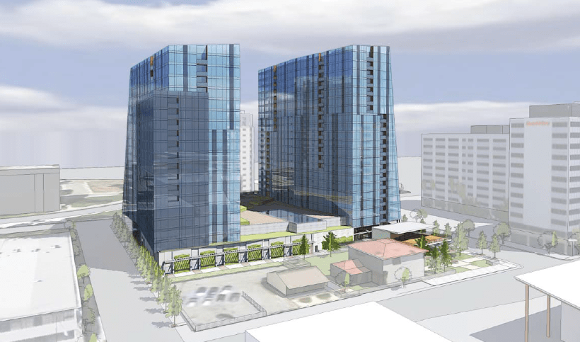 The project, which has been using the name St. James Towers, has yet to secure building permits from the city, but plans to begin construction in 2015. Plans for the St James call for a 643-unit pair of towers, combined with 1,858 square metres of retail in the downtown district of California’s third-largest city.