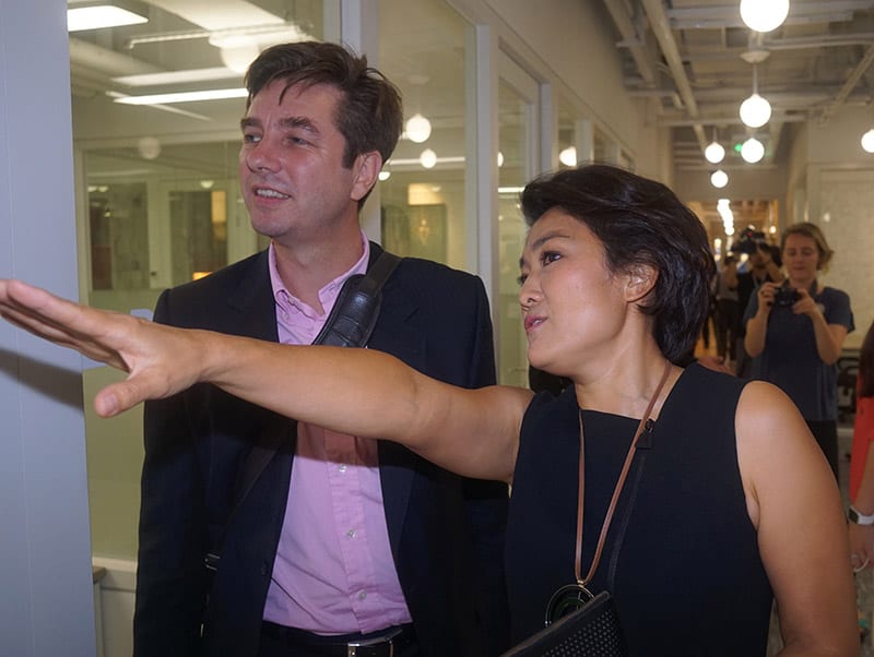 Zhang Xin, the CEO of SOHO China, led a tour of what has been called China’s “Uber for Offices,” while explaining that the online commercial space program should soon become a major source of revenue for the developer.